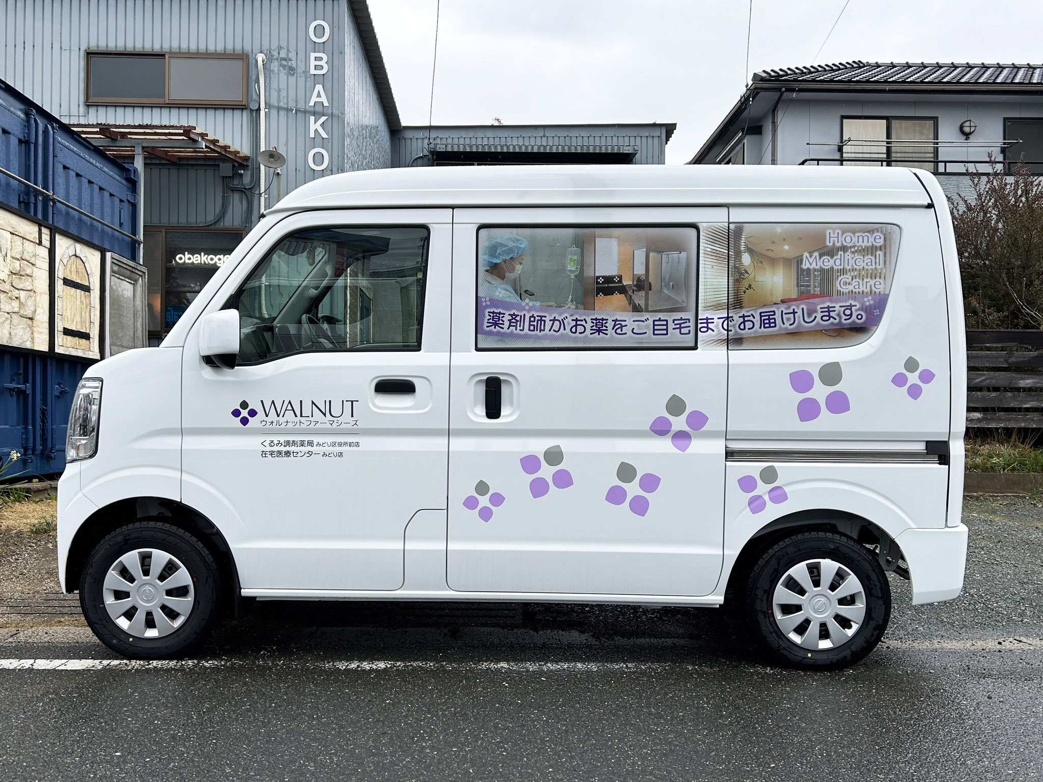 ウォルナットファーマシーズ様、営業車のクリッパー2台にカーマーキングさせていただきました。 この後コーティングをお願いする関係で、太陽工業所様のガレージにて施工です。 風が強い日でしたが、ガレージの中で快適に作業できました。