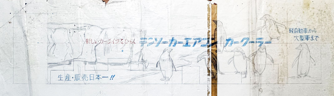 新着制作事例 · 1977/04/05 ㈱スミ電機工業所牛久保営業所様 先月からデザインを考えて準備してきた、㈱スミ電機工業所牛久保営業所様のウインドウディスプレイ。 ようやく無事に取付が完了しました。 今回はカークーラーの内容だったので、見ている人にも涼しさが伝わるよう氷やペンギンの絵を描いてみました。 図書館で南極の本を借りて、写真を見ながらイメージをふくらませました。 完成の写真が撮れなかったのが少し心残りですが、下書きの画像を載せておきます。 tagPlaceholderカテゴリ: 先代の仕事 コメントをお書きください コメント: 0